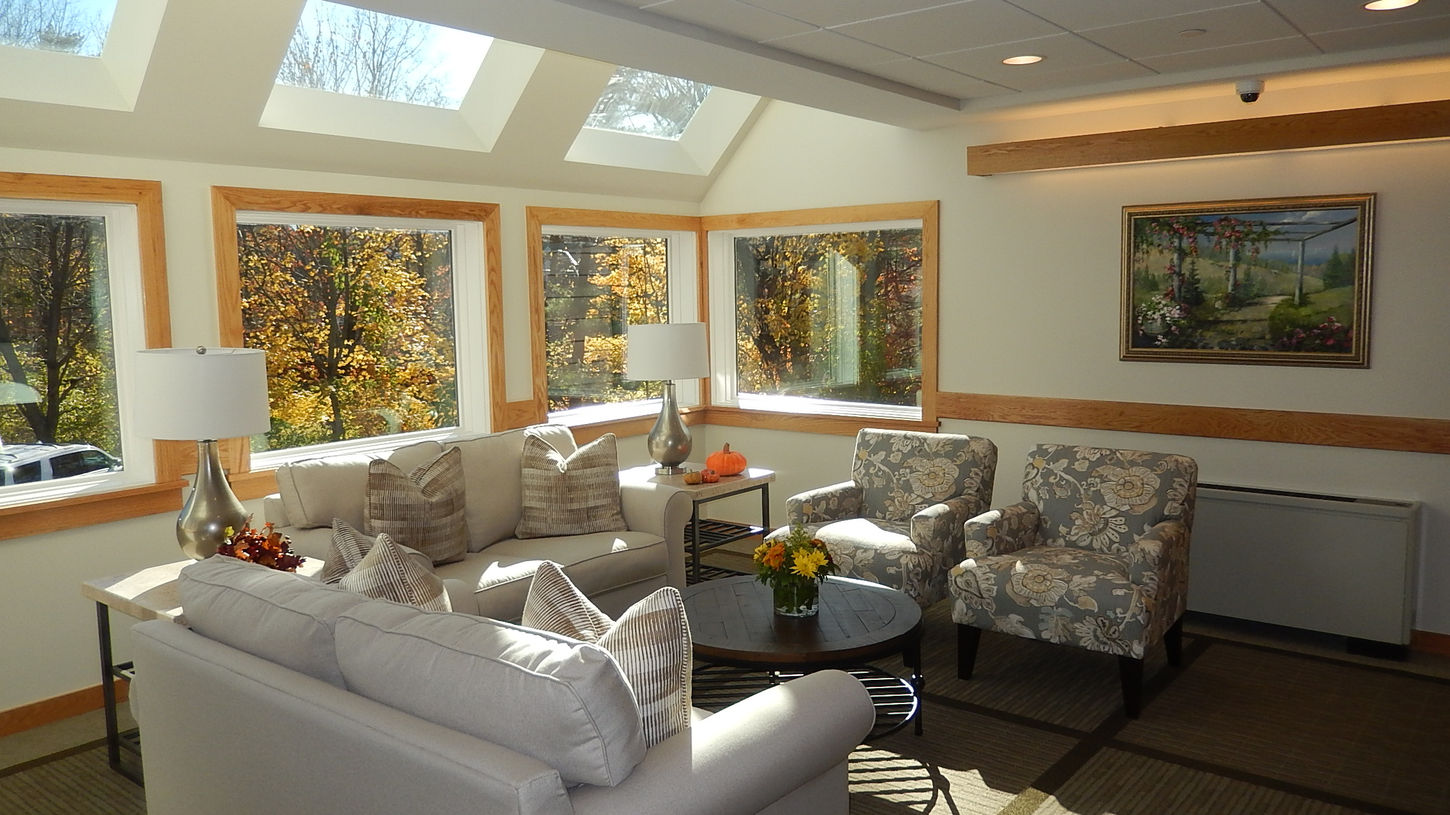 George Buchanan and Brian Cleveland devised a series of solutions to integrate the two buildings. A skybridge that functions like a sun-filled hallway was designed to connect the new facility directly to the primary gathering place for residents in the original building: the dining room. To integrate the residents of the two facilities further, a new community room and a crafts room have been added to the new building and assure that foot traffic will cross the skybridge in both directions. The exterior detailing, form, and scale of the addition were kept in context with the original facility and surrounding homes. To provide four floors of space and maintain harmony with the scale of the older building, the designer carved into the hillside to set the first floor of the addition, storage, and building mechanicals below grade.